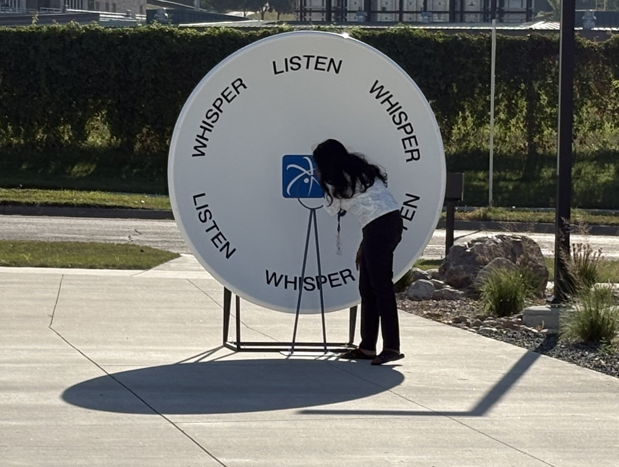Step outside and experience sound in a new way. Two giant-dish reflectors use a parabolic shape to focus your whisper from one side to the other. Speak softly at one focal point and the voice will arrive clearly at the matching point. Give them a try before you head into the gallery or on your way out, and discover the science of sound in action.