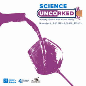 Join us for Einstein on Wine, our signature fundraiser, on Friday, November 21, 2025, at North Dakota’s Gateway to Science. The fun kicks off at 5:30 PM! You’ll mingle among exhibits, sip custom cocktails, and connect with others who are passionate about STEM education. From friendly competition to inspiring conversation, every moment helps power our mission to bring hands-on science to communities across the state.